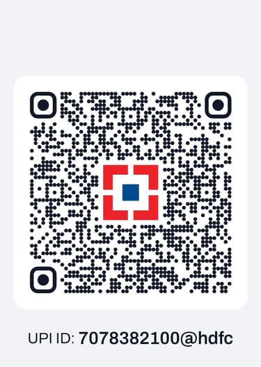 हम अपने पेमेंट गेटवे में आई समस्या के कारण हुई असुविधा के लिए क्षमा चाहते हैं। आप नीचे दिए गए QR कोड को स्कैन करके या दिए गए बैंक विवरण या UPI ID का उपयोग करके अपना भुगतान पूरा कर सकते हैं।